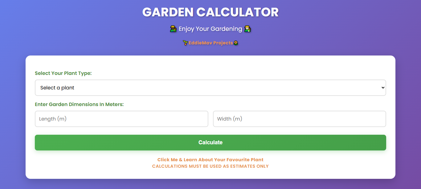 Garden Calculator The Garden Calculator I made this free tool to allow you to calculate and realise your farming goals before spending a single cent.All the calculations are based on realworld esimates. Use The Garden Calculator Here